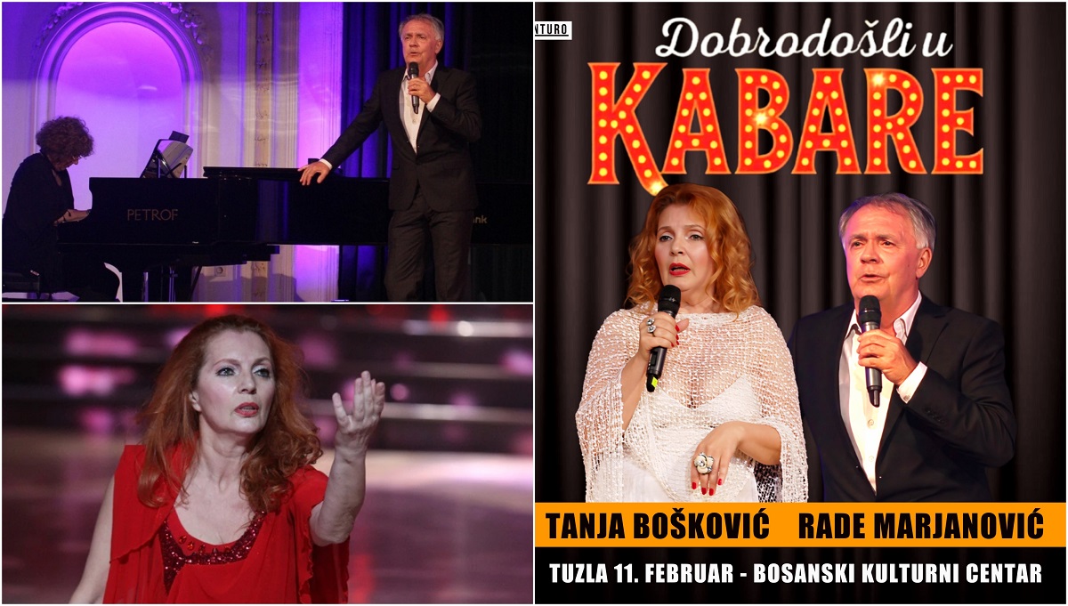 Legendarna glumica Tanja Bošković i prvak Pozorišta na Terazijama Rade Marjanović dolaze u Tuzlu sa pozorišnom komedijom “Dobrodošli u kabare” koja će biti izvedena 11. februara u Bosanskom kulturnom centru sa početkom u 20 sati.