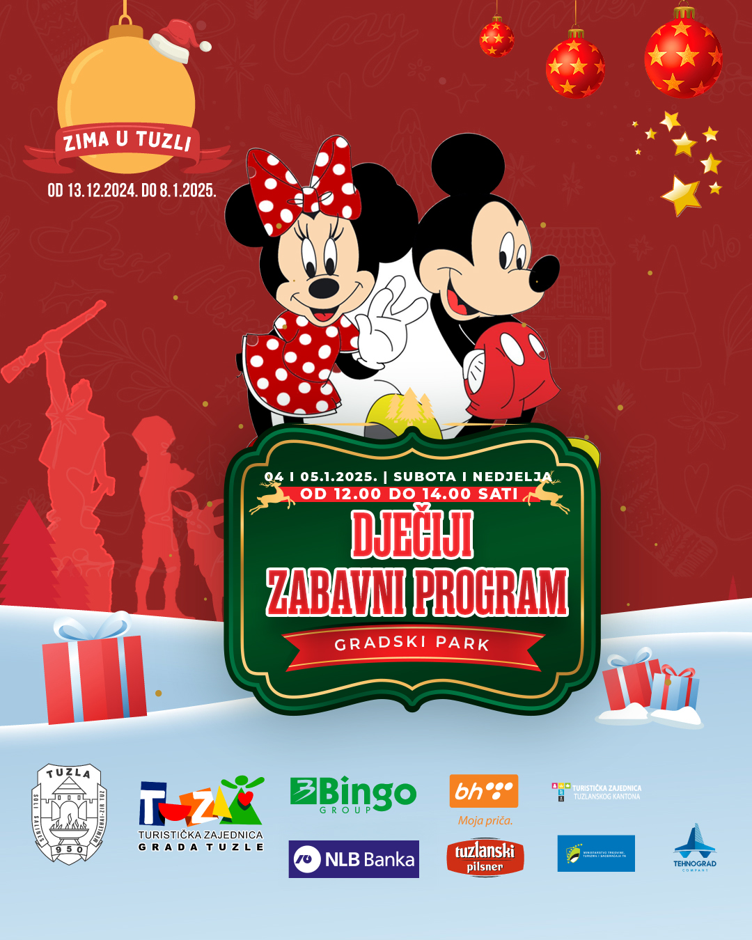U subotu i nedjelju, 4-5. januara će u Gradskom parku ponovo da bude organiziran dječiji zabavni program. U periodu od 12.00 do 14.00 sati dječicu će zabavljati maskote, animatori, face painting i mađioničar.