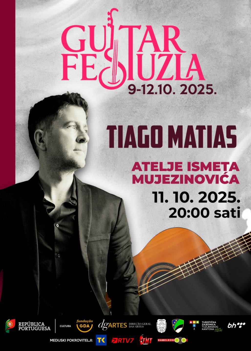 Koncert Tiago Matiasa, popularnog portugalskog gitariste, bit će održan u sklopu Guitar Fest Tuzla, 11.oktobra 2025. u 20:00 sati, u Atelje Ismet Mujezinović Tuzla.