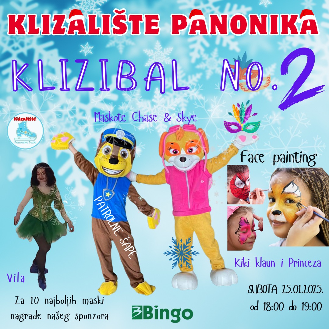 U subotu, 25.01.2025. godine u periodu od 18:00 do 19:00 sati spremite se za najzabavniji događaj na gradskom klizalištu Panonika – KLIZIBAL 2.