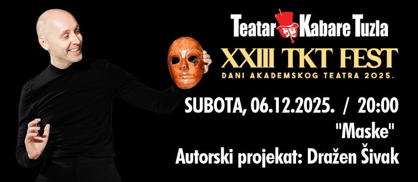 Ne propustite XXIII izdanje TKT Festa – tradicionalnog međunarodnog festivala akademskog teatra koji već decenijama okuplja vrhunske stvaraoce i ljubitelje pozorišne umjetnosti u produkciji Teatra kabare Tuzla. Birajte između višestruko nagrađivanih predstava i osigurajte svoje ulaznice na vrijeme.