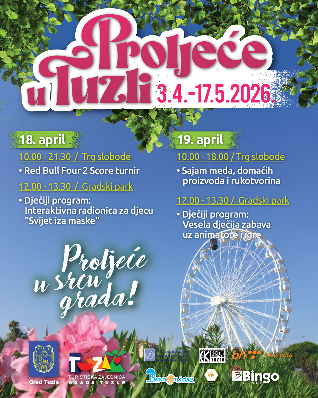 U okviru manifestacije ‘Proljeće u Tuzli′, subota, 18. april donosi zanimljiv program za građane i posjetioce grada.