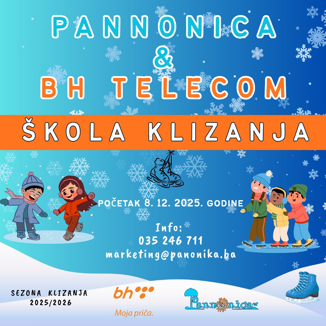 Javno preduzeće Panonika Tuzla najavilo je početak ovogodišnje besplatne škole klizanja na gradskom klizalištu, koja će biti realizovana u partnerstvu sa kompanijom BH Telecom. Program je namijenjen djeci uzrasta od 5 do 10 godina, a početak je zakazan za 8. decembar 2025. godine, saopćeno je iz Panonike.